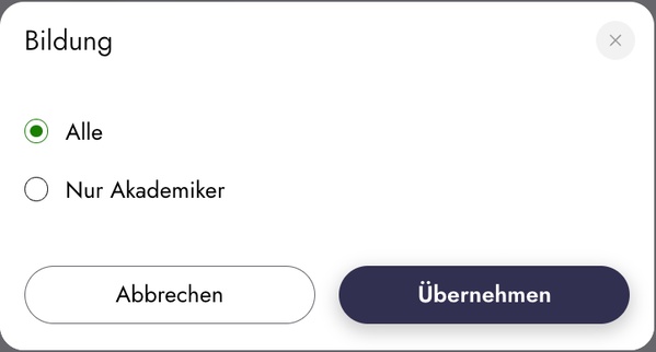 Wer NUR Akademiker vorgeschlagen bekommen möchte, kann den entsprechenden Schalter umlegen: