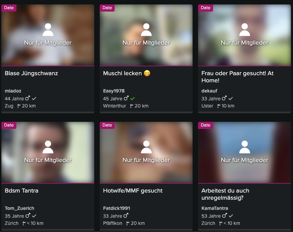 Hier treffen Sie auf Männer, Frauen und Paare, die nach Schweizern suchen, um erotische Abenteuer zu erleben. Vor allem bei Swingern aus der Schweiz ist JOYclub sehr beliebt.