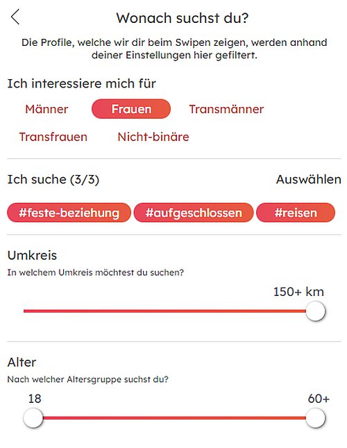 Die Profile werden Ihnen auf Basis Ihrer Sucheinstellungen vorgeschlagen.