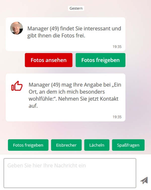 Wenn Sie nichts machen, erhalten Sie monatlich rund 50 neue Vorschläge. Dazu kommen noch Singles, die Ihnen eine Nachricht schreiben oder eine Fotofreigabe anbieten.