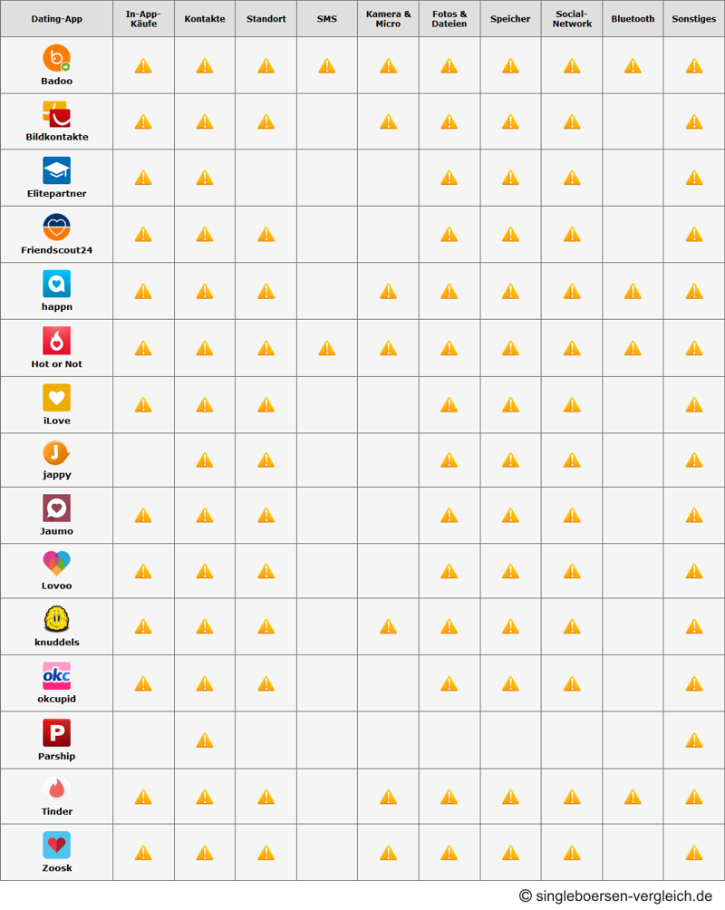 Das Expertenteam von Singleboersen-Vergleich.ch/at/de hat in seiner Erhebung die Zugriffsberechtigungen bei 15 populären Dating-Apps, die für Android-Geräte konzipiert wurden, unter die Lupe genommen. Dabei stellte es sich heraus, dass 93 Prozent der Apps, inklusive Lovoo, Badoo und Tinder, auf Fotos, Medien und Dateien auf dem Smartphone zugreifen.