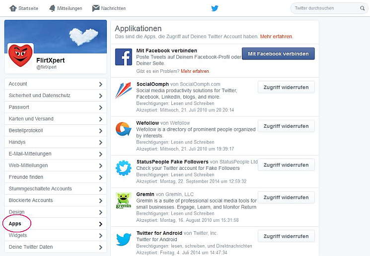 5. Praxistipp 2: Flirt App Zugriff bei Twitter löschen